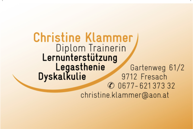 Mein Name ist Christine Klammer. Als Lernbegleiterin, Legasthenie- & Dyskalkulietrainerin und BENAUDIRA-Hörtrainerin begleite ich Kinder auf ihrem Weg – und ich freue mich, Ihnen hier ein wenig von meiner Motivation zu erzählen.“